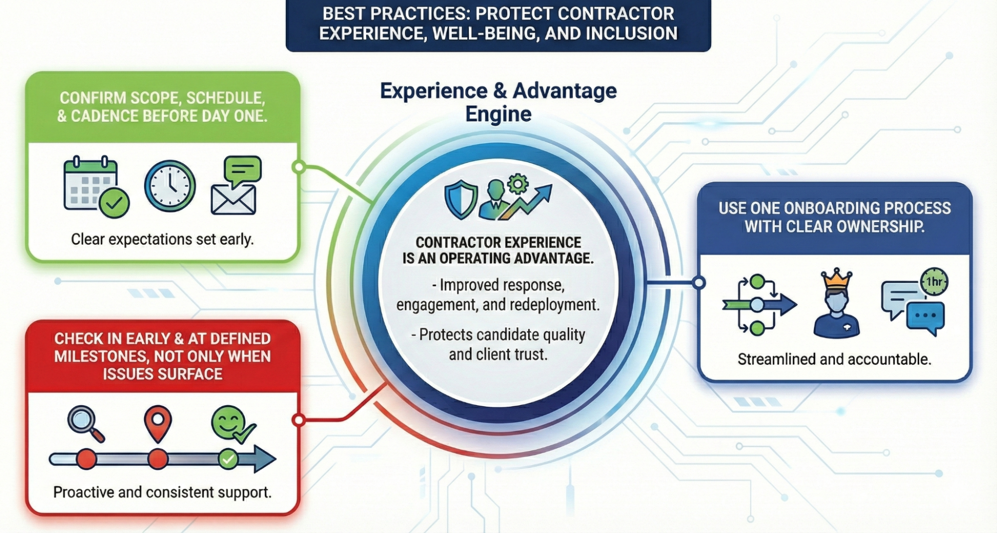 Contractor experience is an operating advantage. Contractors respond faster, stay engaged longer, and redeploy more reliably when onboarding and communication are consistent.