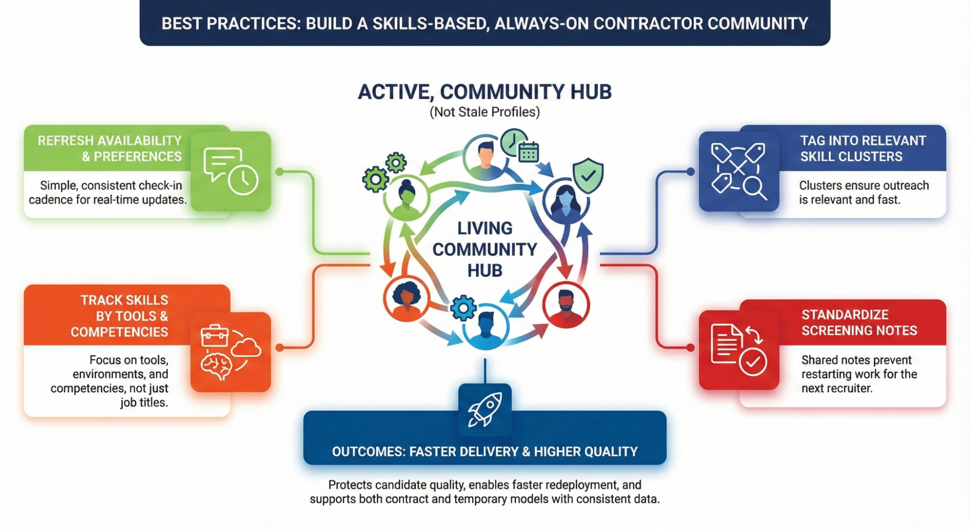A current contractor community is the fastest path to consistent delivery. Contractors need accurate skills, verified experience notes, and updated availability, not stale profiles.