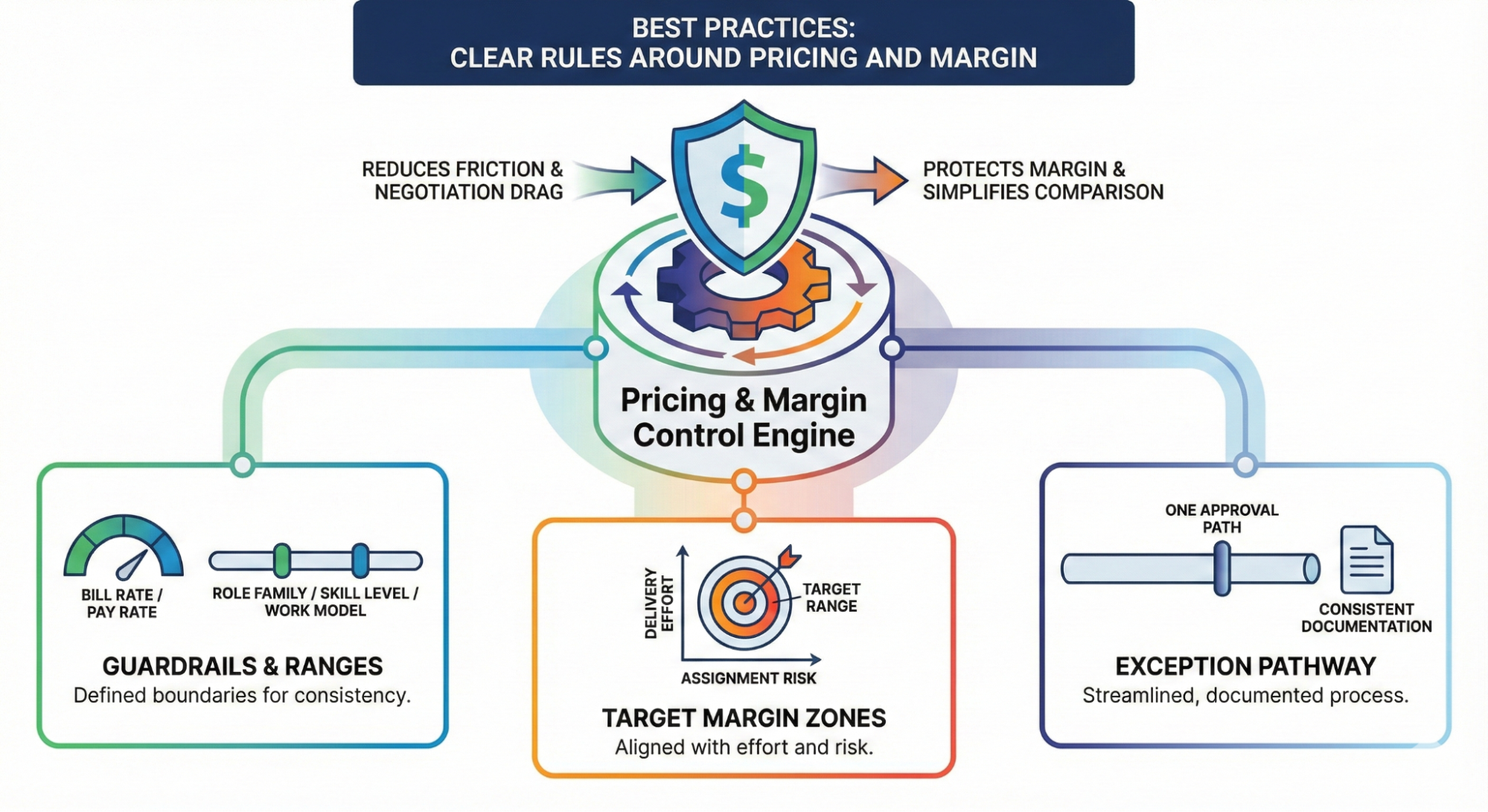 Pricing rules protect margin and reduce friction. They also reduce negotiation drag when a client compares one staffing provider to another.
