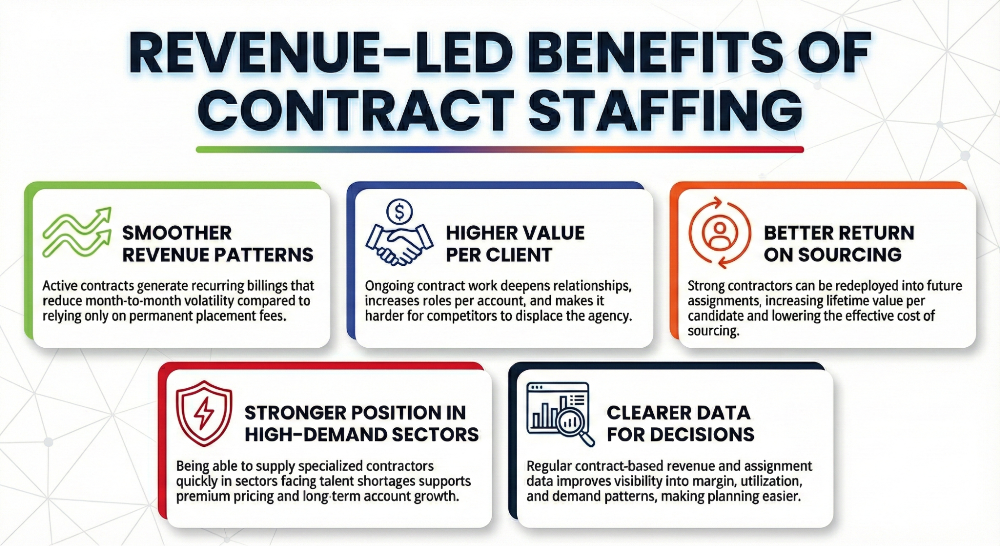 Contract staffing supports revenue when it runs like a system. It creates a steadier billing rhythm, adds repeatable role flow inside existing accounts, and strengthens retention when clients view the agency as an operating partner instead of a last-minute option.